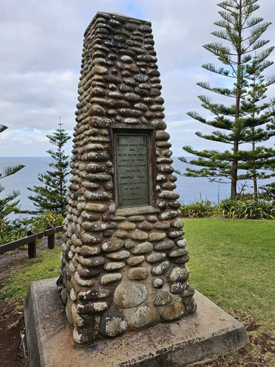 “Captain James Cook, RN, on his second voyage around the world discovered and named this island, Norfolk Isle, landing in the Vicinity of this point on October 10, 1774.”