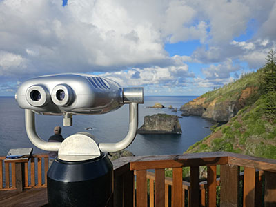 In December 2024 the Norfolk Island Park and Botanic Garden installed a new set of binoculars at the Captain Cook Monument Lookout. These are free to use and are perfect to get a great view of the coastal sea birds as they fly past and up-close view of the small islands along the shoreline. Earlier this year my grandchildren enjoyed looking through the binoculars during our visit to the Captain Cook Reserve.