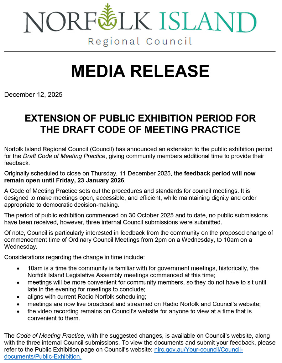 EXTENSION OF PUBLIC EXHIBITION PERIOD FOR THE DRAFT CODE OF MEETING PRACTICE