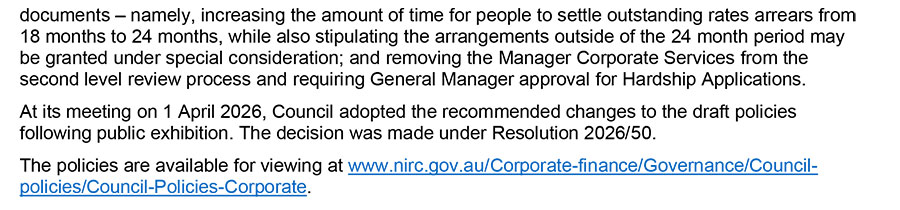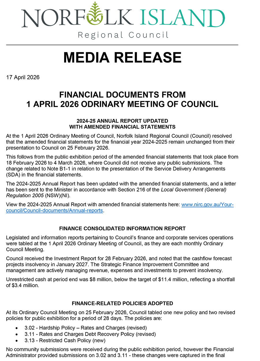 FINANCIAL DOCUMENTS FROM 1 APRIL 2026 ODRINARY MEETING OF COUNCIL