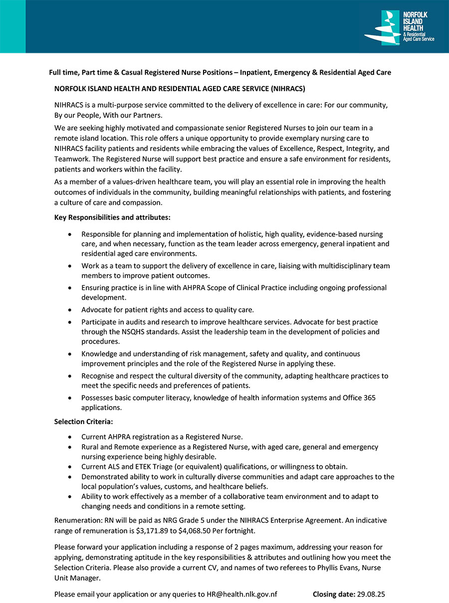 Full time, Part time & Casual Registered Nurse Positions – Inpatient, Emergency & Residential Aged Care