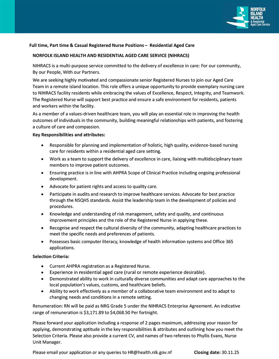 Full time, Part time & Casual Registered Nurse Positions – Residential Aged Care