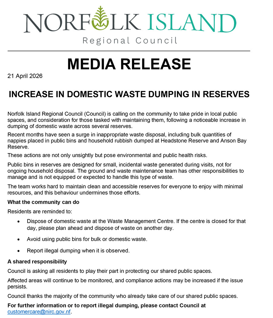 INCREASE IN DOMESTIC WASTE DUMPING IN RESERVES