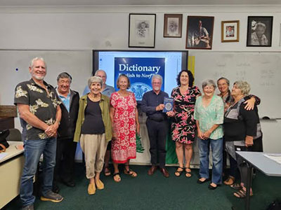 Tonight the Norfolk Island Council of Elders president David Buffett was presented with the first copy of the Norfolk Island Language dictionary and endorsed the dictionary.