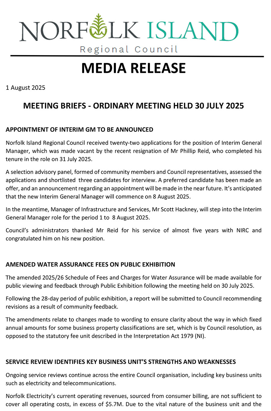 Meeting Briefs Ordinary Meeting held 30 JULY 2025