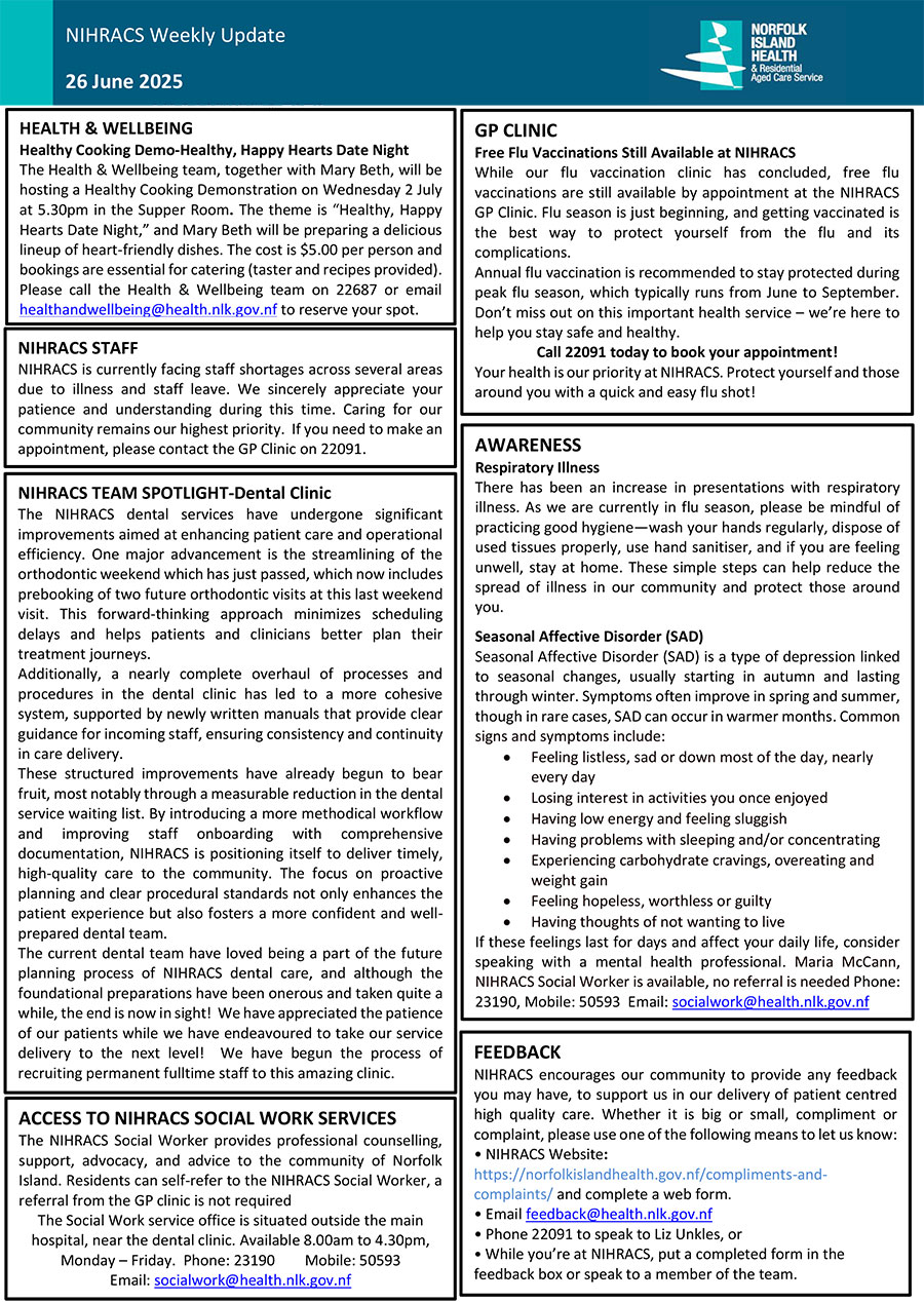 NIHRACS Weekly Update 26 June 2025