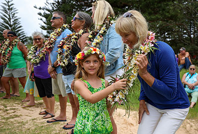 Each of the Wa'a outriggers are named after the Tahitian mothers and during the ceremony they were given blessings with outriggers team steerers and Norfolk Island elders laying of wreaths as respect to our Tahitian foremothers.