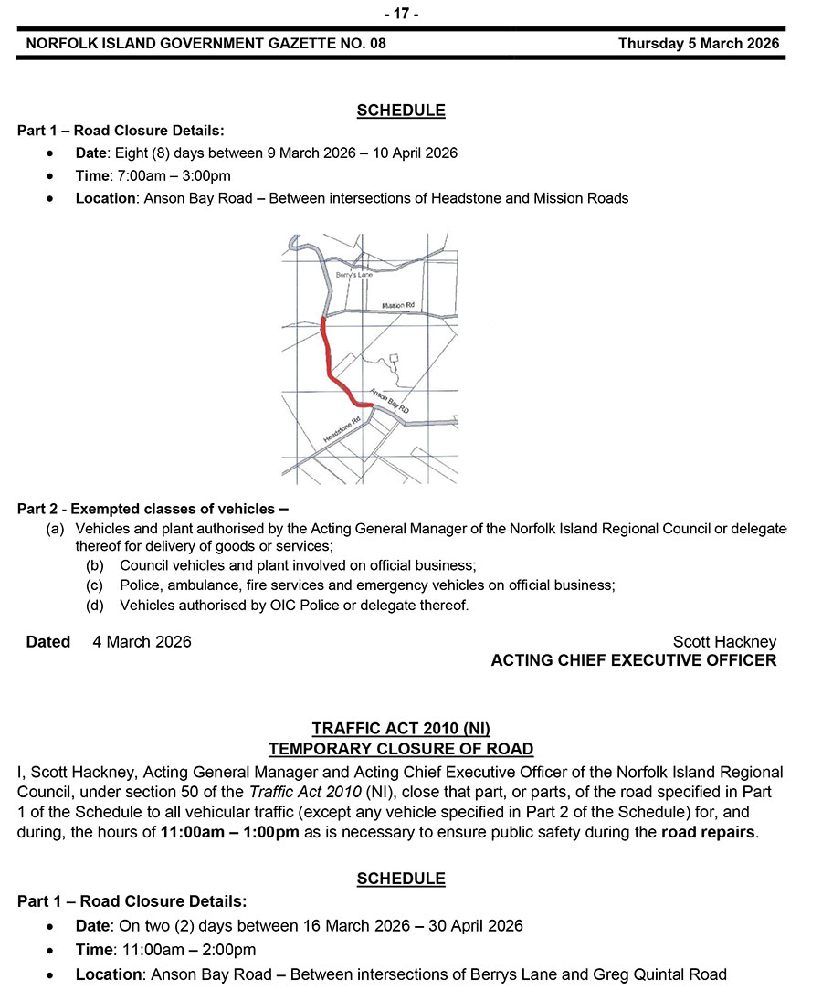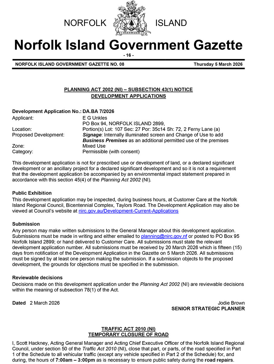 NORFOLK ISLAND GOVERNMENT GAZETTE NO. 08