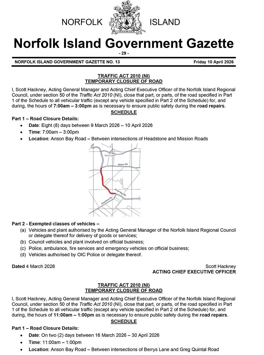 NORFOLK ISLAND GOVERNMENT GAZETTE NO. 13
