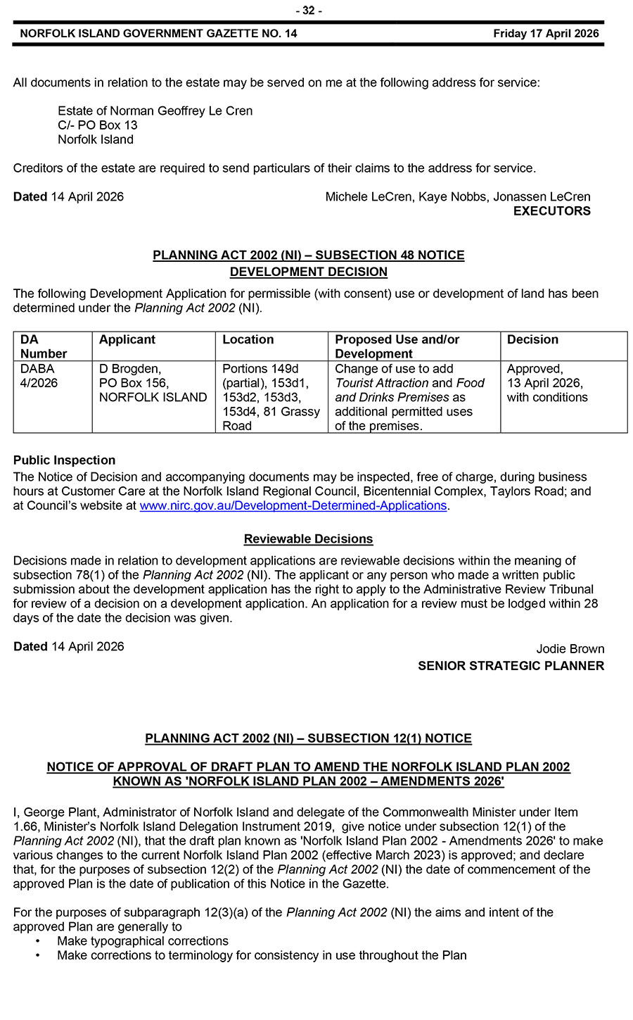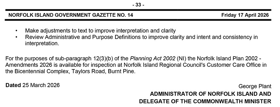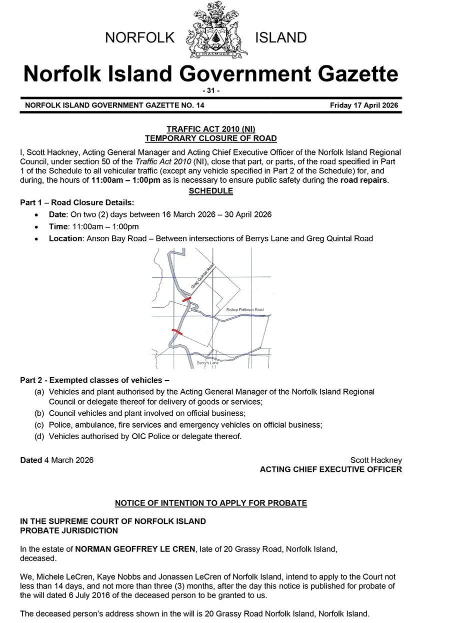NORFOLK ISLAND GOVERNMENT GAZETTE NO. 14
