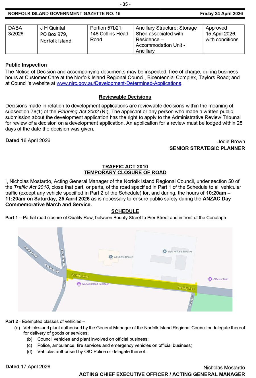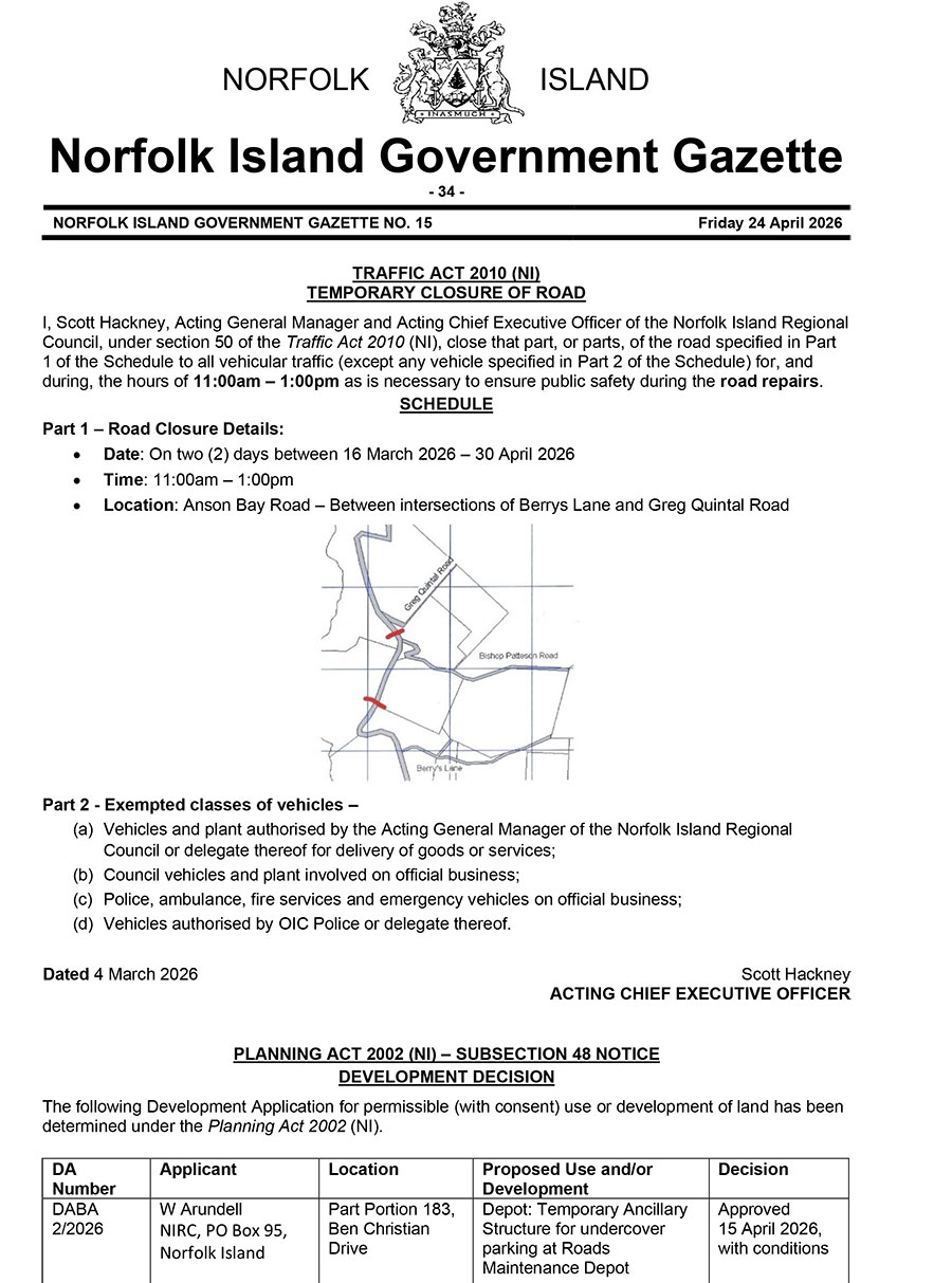 NORFOLK ISLAND GOVERNMENT GAZETTE NO. 15