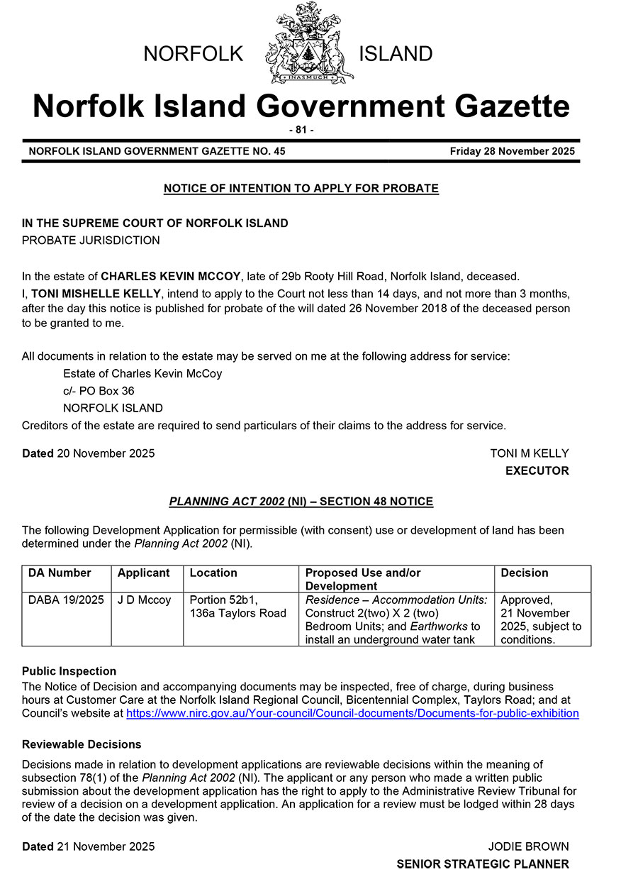Norfolk Island Government Gazette NO. 48