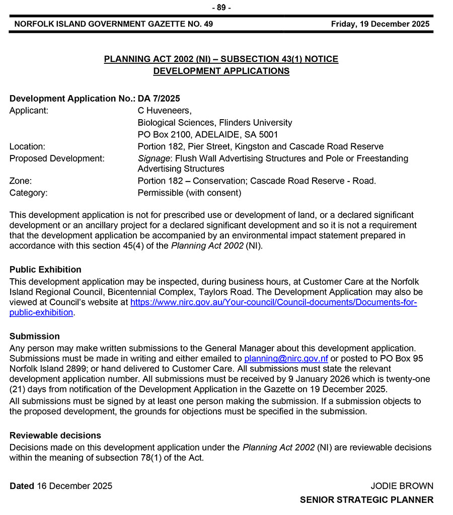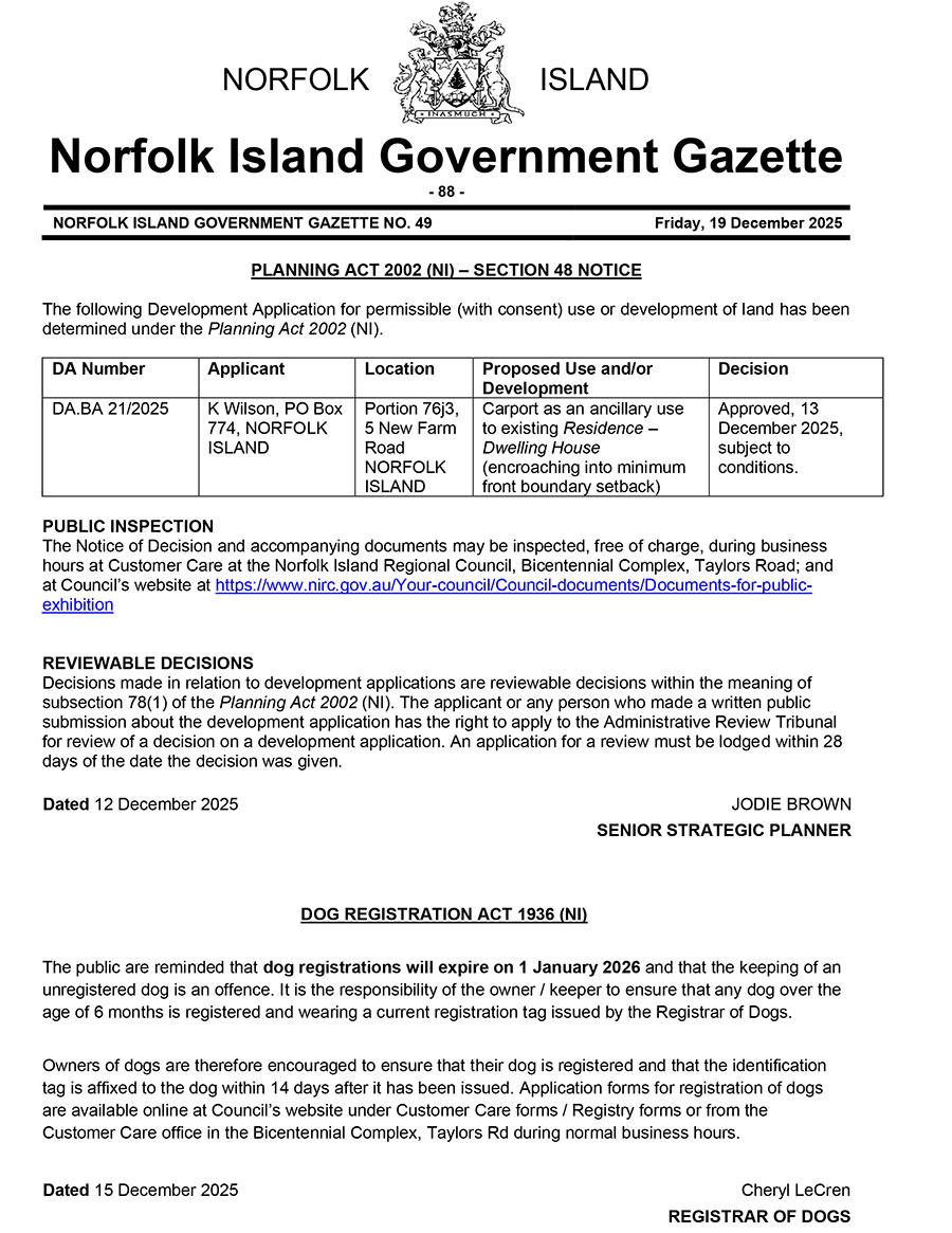 Norfolk Island Government Gazette NO. 49