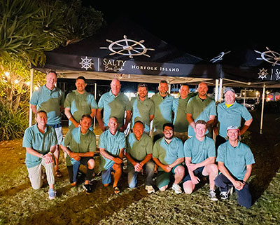 A huge thankyou and shoutout to everyone on Island who has helped make the tour not only possible – but a huge success. Major sponsors The Salty Beer Garden and Norfolk Island Real Estate plus Glencar Luxury Villas and Norfolk Island Pharmacy. 2 Drips Norfolk Island Water who kept the players hydrated. Kevin Randall and George Murray for preparing the BBQs for our visitors after the games on Monday and Wednesday evening. Brett Leigh for his entertaining commentary, Alex McGillycuddy and Teddy Evans for umpiring and Kirstin Ellard, Ewan Fraser, and Tony Wilkinson for scoring. Thanks to Joanie Blucher and Tootie Wilson for assisting with serving food and Jonno Snell for taking some cracking photos. And the biggest acknowledgment must go to NICC Secretary Michelle Dowling. She had a vision and made it happen not only organising the entire trip but also catering, scoring and DJ-ing all at the same time.
