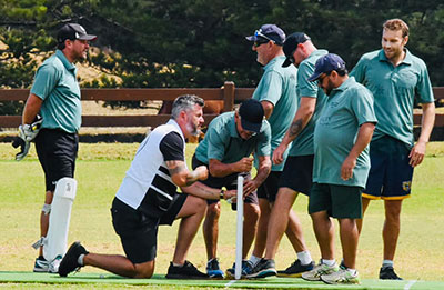Dr Adrian Sheen has done some work at the Norfolk Island Hospital and is also the inventor of the Widdlometer, an easy-to-use device aimed at detecting warning signs of bladder and prostate cancer. Dr Sheen loves his sport and whilst working on the Island, has sponsored the Widdlometer Cup at both the Bowling Club and Golf Club. Last April with Norfolk Island Cricket Club having just been reformed a chance discussion with Cricket Club Secretary, Michelle Dowling at the Golf Club, suddenly became a full-on cricket tour just 12 months later with Adrian Sheen and the Mulgoa Cricket Club adding Norfolk Island to their long list of tour destinations from around the world. The team arrived on Sunday afternoon with 20 supporters in tow with the first game scheduled for Easter Monday – A forty over match against a much younger but very inexperienced Norfolk Island team who had little practice at playing anything longer than a Twenty20 match.