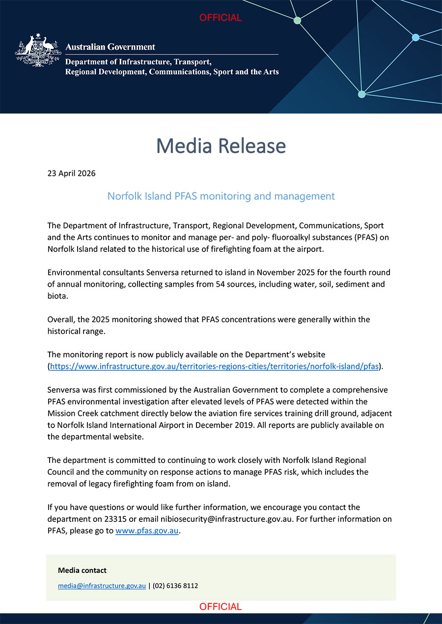 Norfolk Island PFAS monitoring and management