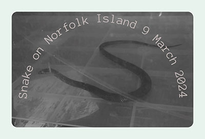 It is one year since a snake was discovered on Norfolk Island in March 2024. This uninvited snake was discovered by a local Norfolk Island lady when unpacking eggs at Foodland Supermarket. The staff member who was bitten by the snake, was taken to the Norfolk Island hospital for treatment, she told me she had a throbbing finger and a headache following the snake bite.