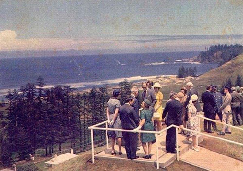Royal yacht Britannia anchored in Sydney Bay in the early hours on 11 February 1974 and Her Majesty was transported ashore in an Administration Launch. Her Majesty was accompanied by His Royal Highness the Prince Philip (Duke of Edinburgh), Her Royal Highness the Princess Anne, and Captain Mark Phillips. The Royal Party made a tour of the historic areas in Kingston during which the Queen laid a wreath on the cenotaph and named the “Queen Elizabeth Lookout”.”