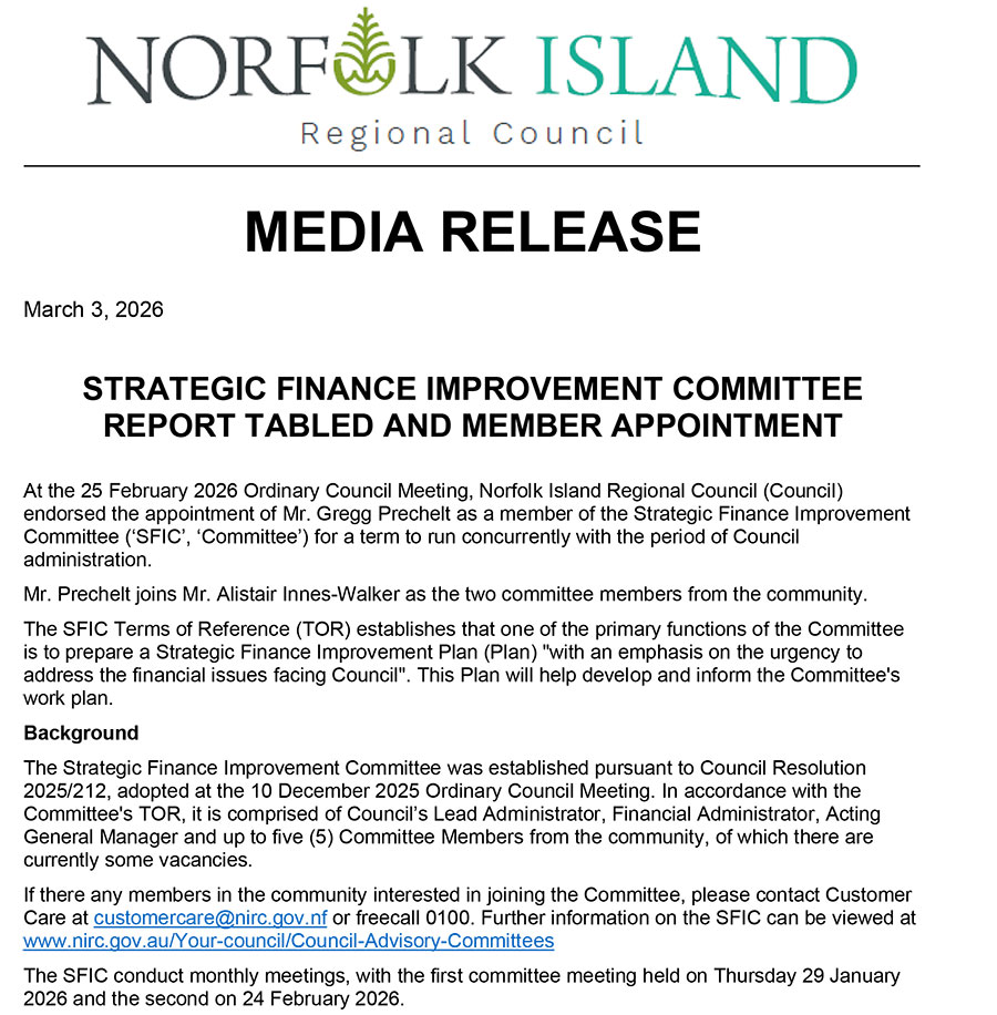 STRATEGIC FINANCE IMPROVEMENT COMMITTEE REPORT TABLED AND MEMBER APPOINTMENT