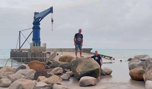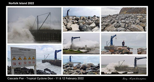 There are suggestions that a slip way or groyne should be constructed at the Cascade Pier to assist with shipping and possible future barge services. Overseas engineers have presented designs in recent years, but it is always wise to talk to local Norfolk Islanders as they have the experience of sea conditions around Norfolk Island coastlines. In 2016, and 2017 the Cascade Pier was upgraded and extended approximately 25 metres, the new deflector along the side of the Pier must have angled the waves to water blast the massive boulders up onto the land and roadway.