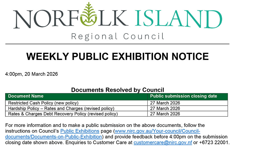 WEEKLY PUBLIC EXHIBITION NOTICE