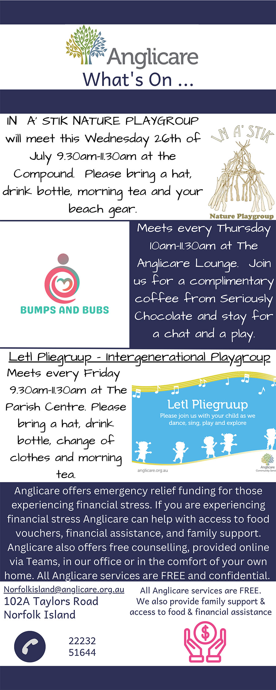 What is happening at Anglicare this week?