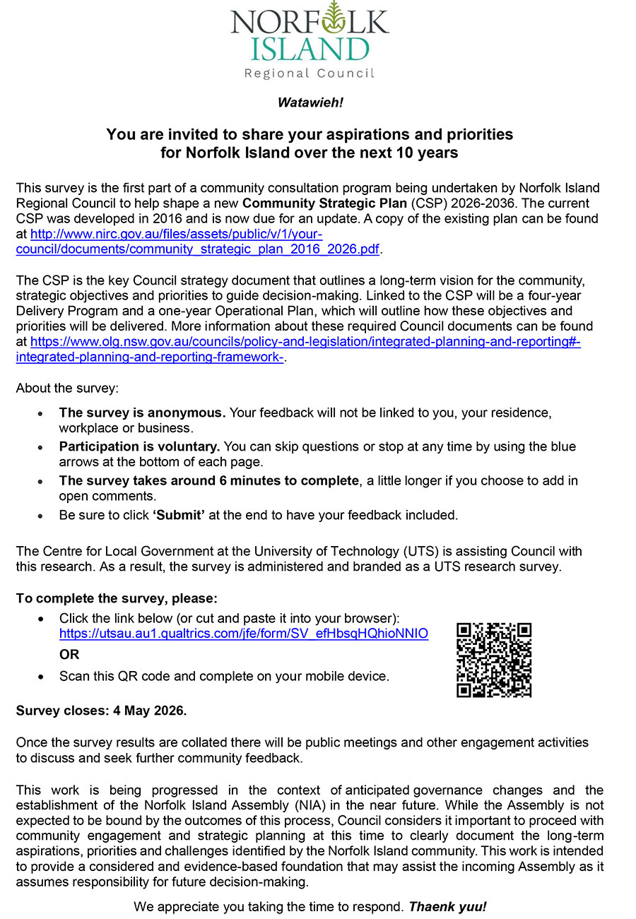 You are invited to share your aspirations and priorities for Norfolk Island over the next 10 years