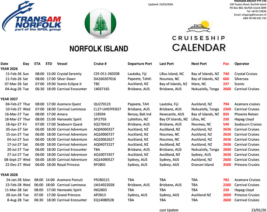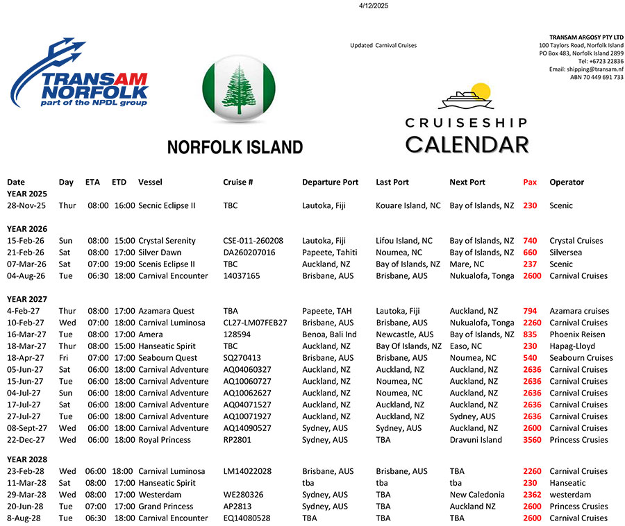 CRUISE SHIPS SCHEDULE FOR 2025